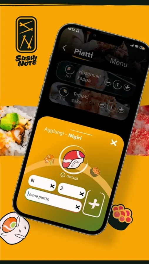 Thanks to the overlapping Sushi Spinner, it is possible to add the chosen dish