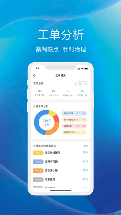 服务于崂山区智慧物业政务管理人士,实现移动办公,对物业进行线上管理