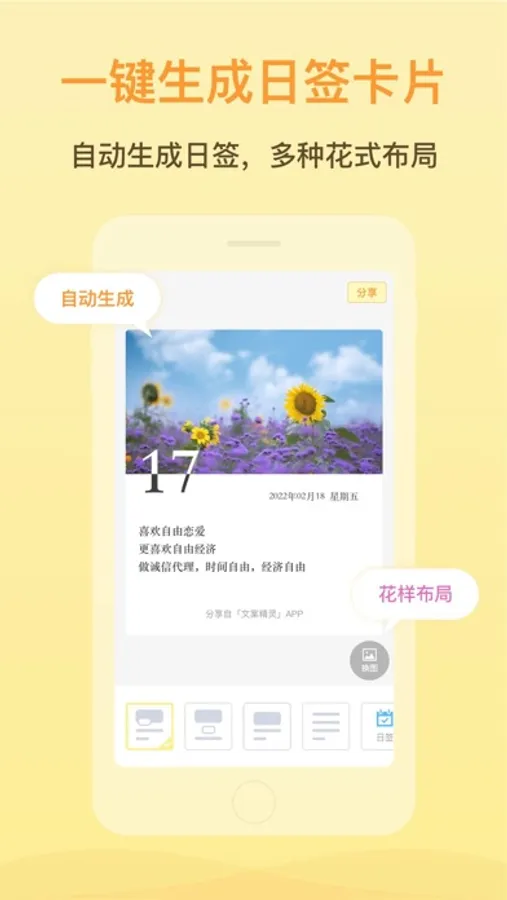 文案支持生成日签,可以连续打卡