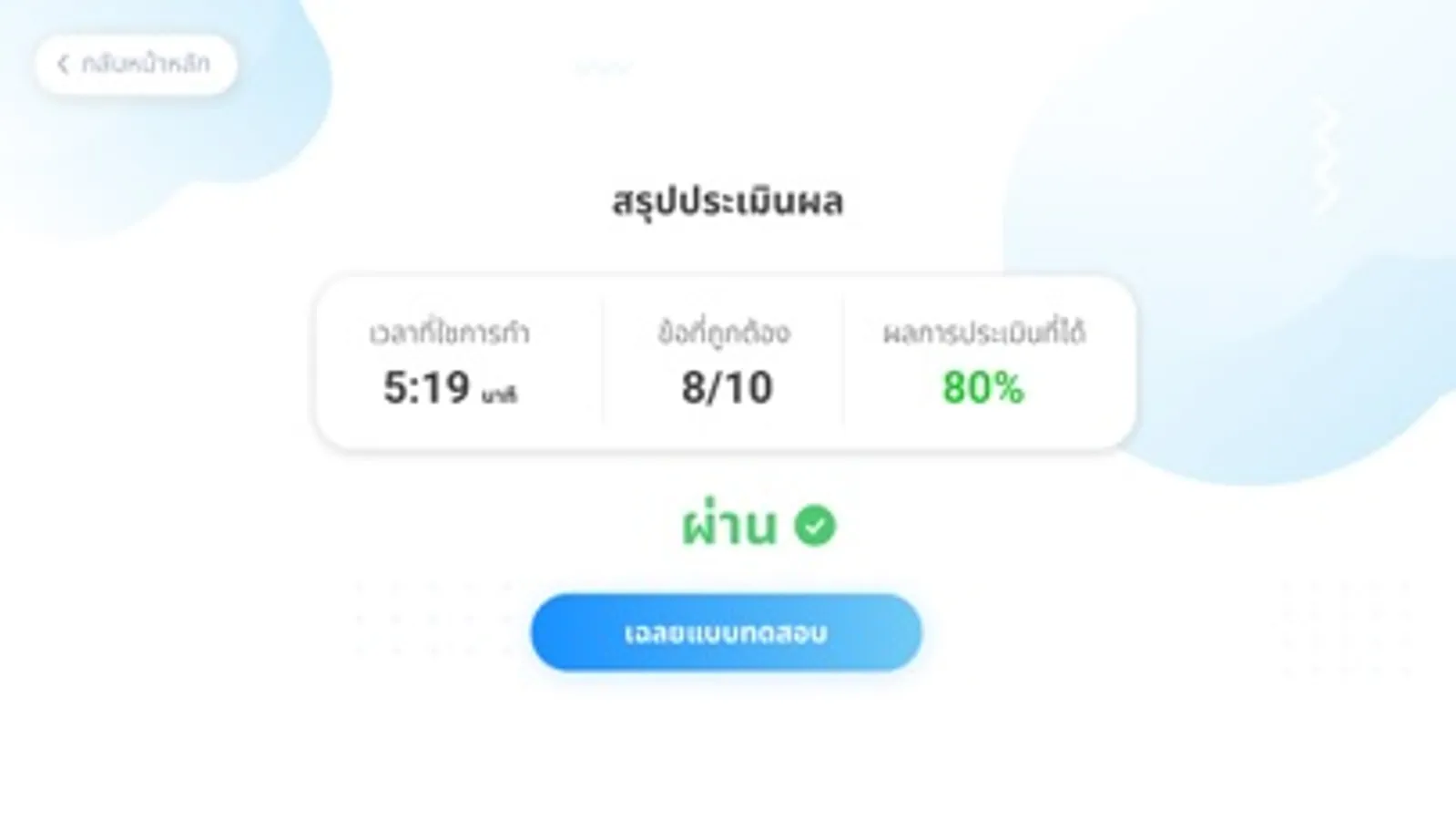 - สามารถ สรุปรายงานผล ในรูปคะแนน มีเฉลยคำตอบ สามารถฝึกปฎิบัติได้ด้วยตนเองและพัฒนาทักษะได้เพิ่มขึ้น