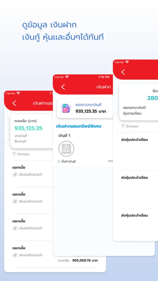 - ดูยอดเงิน รายการเคลื่อนไหวบัญชีเงินฝาก