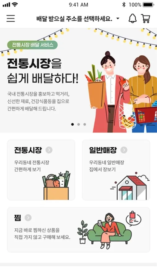 고령화된 상인들을 위한 디지털 문맹 제로화된 특별한 시장 배달앱.