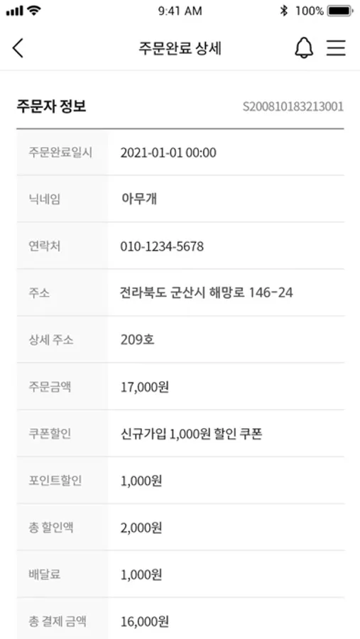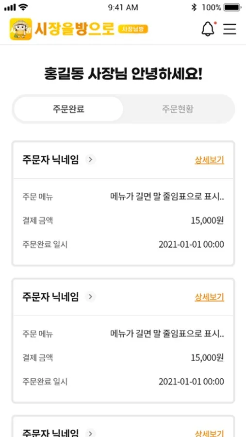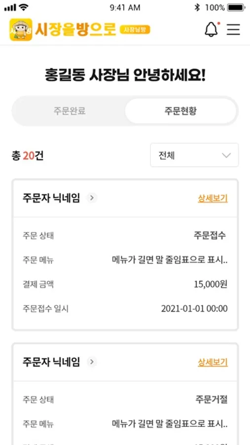 주문 상태 및 주문자 정보를 한눈에 확인 가능합니다.