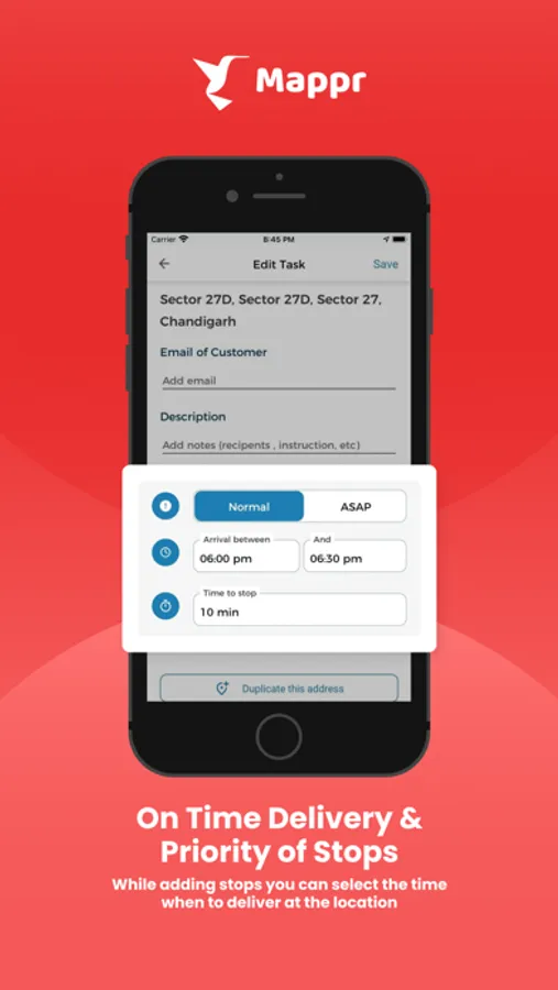 -Stops will be given priority and will be completed at the start of the route if they are marked as ASAP.