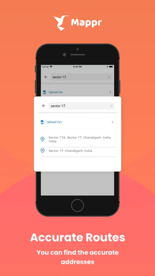 -You can enter the address by name of the place or if you have the coordinates and not sure of the location then Mappr will do the reverse geocoding and if you have multiple addresses to enter that can be done at a single go through uploading CSV/Excel .