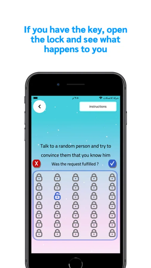 You can also play the key challenge, where players can add random challenges or choose ready-made challenges from within the application, open the lock randomly, implement the request, solve the puzzle or challenge