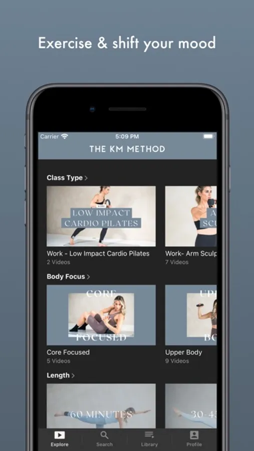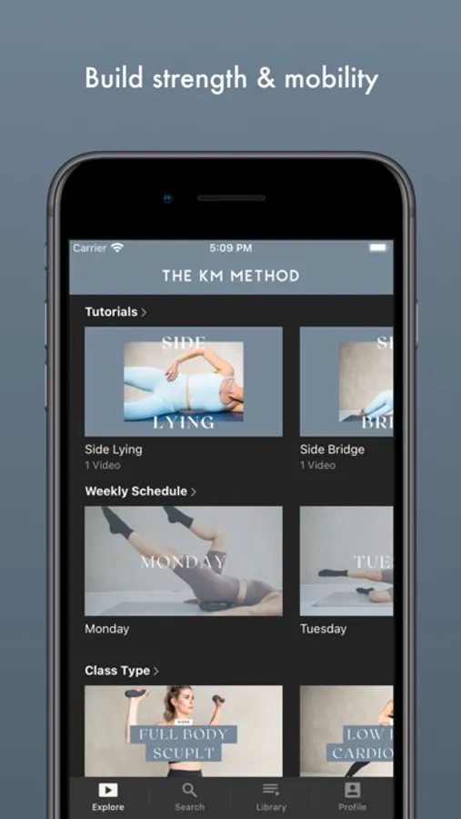 The KM Method Studio contains a library of on-demand workouts, programs and off the mat wellness rituals. Search by class type, equipment, and time to suit your body and mood. You will also find weekly curated workout schedules, playlists and premium Pilates programs.