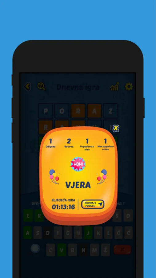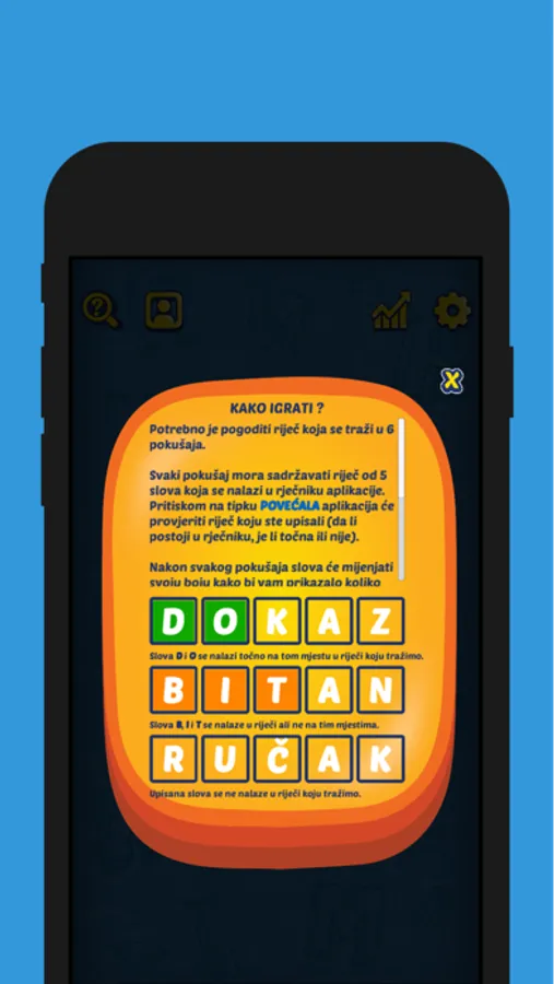 "Pogodi riječ" je igra u kojoj je potrebno pronaći riječ koja se traži od tebe. Svi igrači traže istu riječ i natječu se tko će u što manje koraka pronaći traženu riječ.