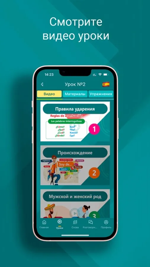 Приложение разработано на основе уникальной методики обучения, которая используется в реальной школе Испанского языка.