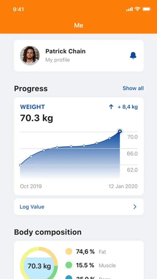 - Obtén fácilmente el seguimiento de tu peso y otros parámetros corporales.
