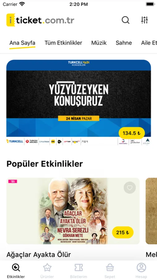 iTicket.COM.TR application makes it easy and fast to purchase tickets for all types of events such as concerts, theaters, exhibitions and museums.