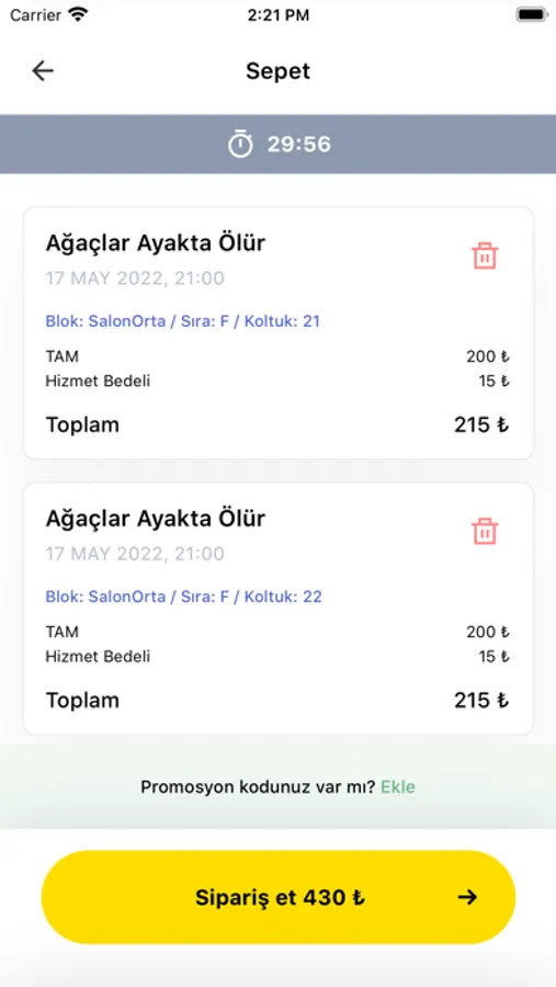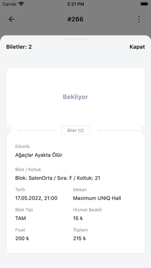 - The tickets you bought via the iticket.com.tr website, are also stored in the application.