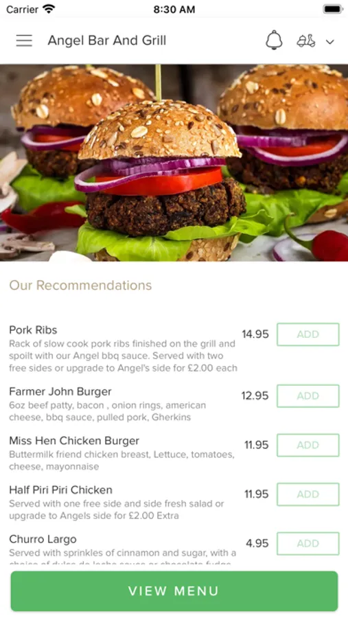 At Angel Bar and Grill we are proud to serve you locally produced high end Gourmet beef Burgers, premium quality Steaks and meat, homemade pork ribs, sauces, milkshakes, delicious hotdogs and a selection of premium quality wines, whiskey, vodka, rum, gin, cognac, liqueurs, shots, ciders, beers, hot drinks and soft drinks.