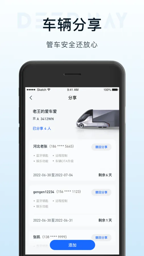 省去线下物理钥匙的传递,随时随地线上分享车辆,让车主管车更加轻松,司机用车更加安全。