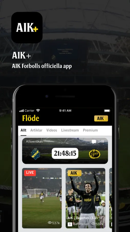 AIK Fotboll lanserar appen AIK+! Tjänsten ger dig som AIK-supporter en unik inblick i klubben med exklusivt material från dam, herr och ungdomslag. Med AIK+ får du dessutom nyheter, resultat, statistik och mycket mer innehåll AIK Fotboll. I appen kommer vi samla allt AIK Fotbolls rörliga material, både det som är gratis (AIK Play) eller det som ingår i medlemskapet för AIK+.