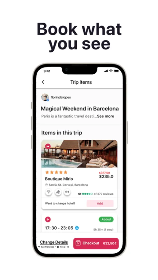 Through our app, you can discover new hotels and destinations through engaging short form vertical video content. This immersive and inspiring format allows you to explore new places and envision yourself on your dream trip.