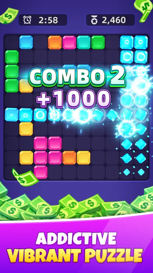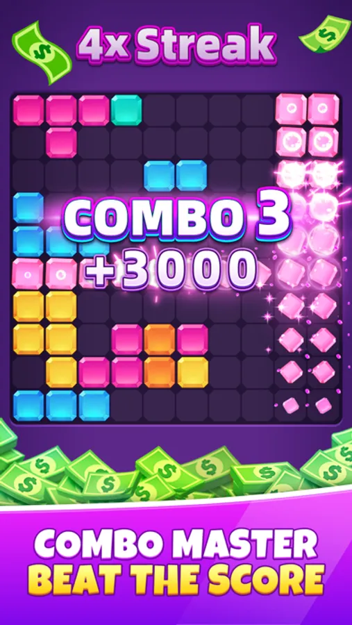Clear rows, columns, or squares on the board by filling them with blocks. Clear them back-to-back to earn Combo points or trigger Frenzy Multipliers for even bigger bonuses. Race against the clock to earn the highest score you can and outperform opponents to claim match prizes. Anyone can play this simple block game, but it takes skill to walk away a champion!