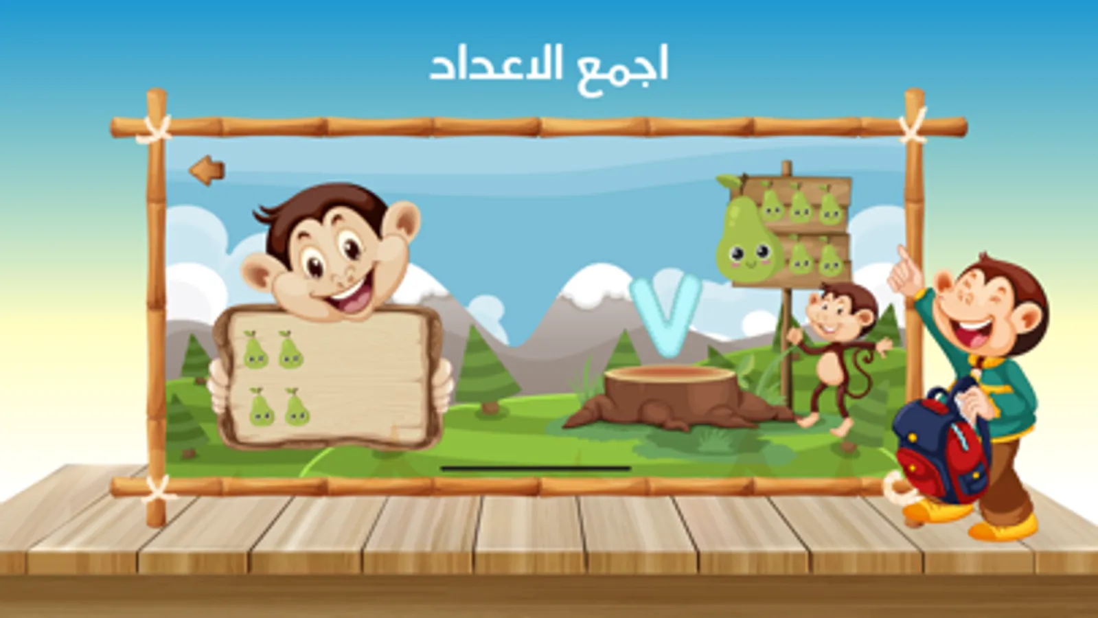يقوم الطفل بحل مسائل جمع او طرح الأرقام ويختار الإجابة الصحيحة من مجموعة ارقام تظهر أعلى الشاشة.
