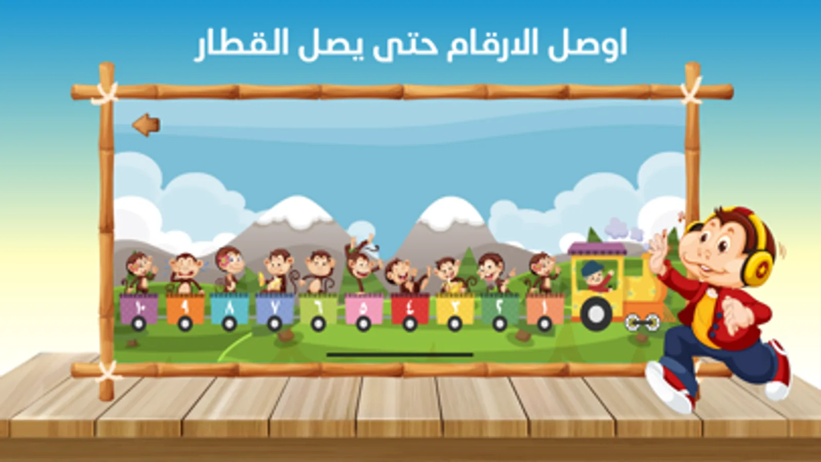 يتعلم الطفل بهذه المرحلة ترتيب الأرقام التي تظهر في قاطرات أعلى الشاشة من الأصغر للأكبر.