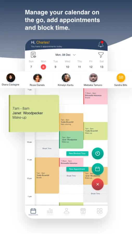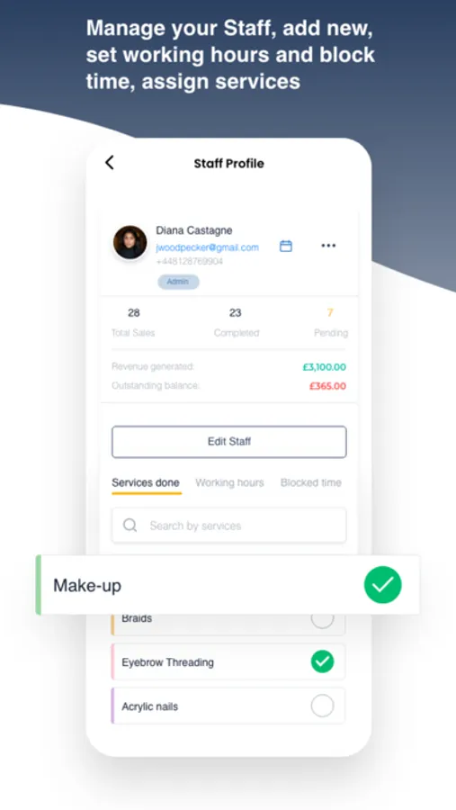 Independent beauty professionals and salon can manage bookings and staff schedules, communicate with clients easily, boost sales, hire staff and sell products through access to an extended set of web & mobile tools built to help manage and grow her business operations effectively, across one or multiple locations.
