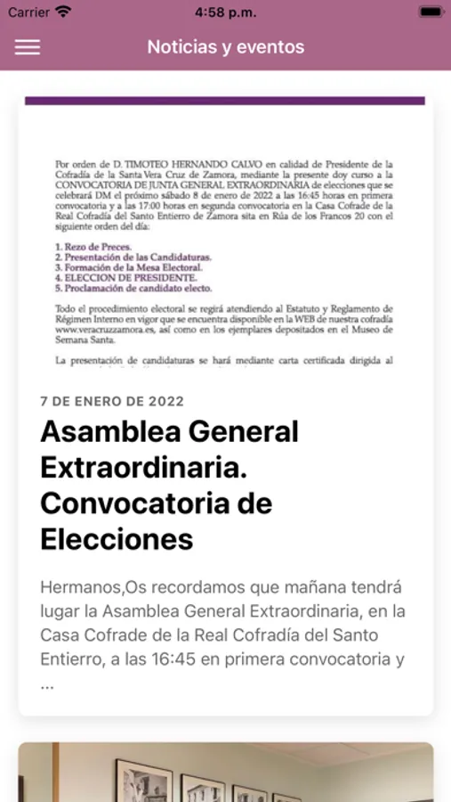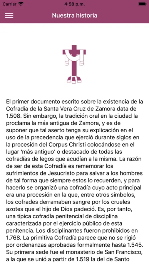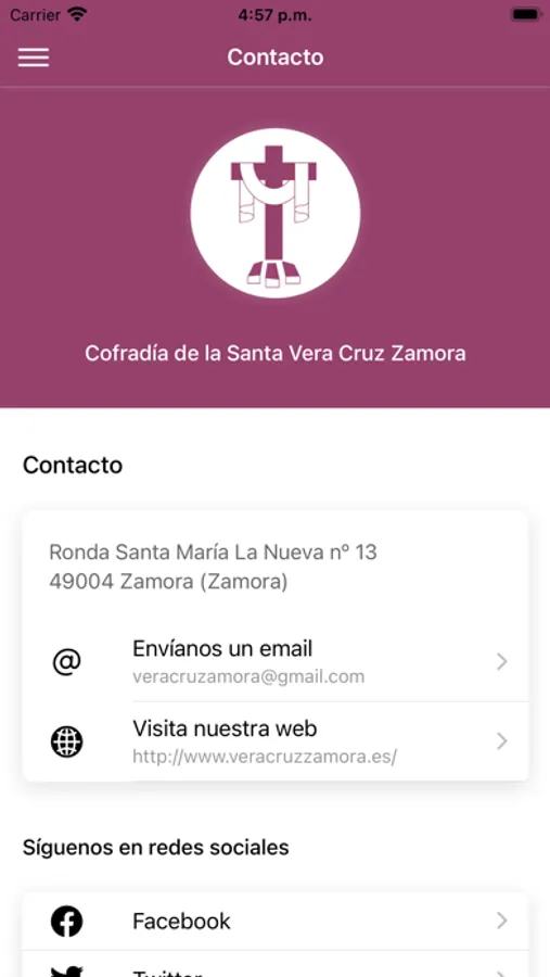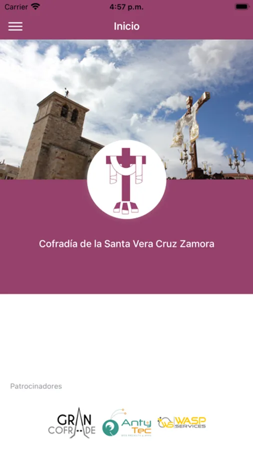 Aplicación Oficial de la Cofradía de la Santa Vera Cruz Zamora (Disciplina y Penitencia) de Zamora, próximas salidas y acceso identificado para los hermanos/as en el que pueden consultar/modificar sus datos personales, consultar recibos y recibir notificaciones de la Cofradía.