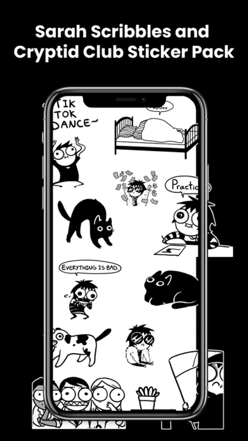 iOS / iMessenger Sticker pack featuring dozens of hilarious reactions from Sarah's Scribbles