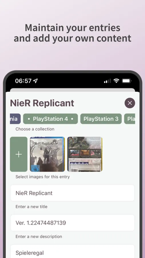 Add images, texts, links, etc. and complete your collections.