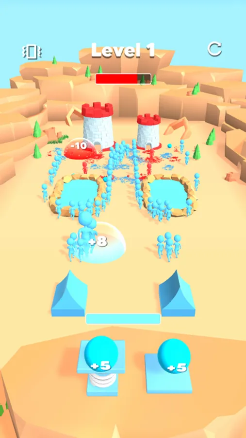 You set up your headquarters to attack a strong castle. You launched a relentless attack on the rival castle with your army and they came out of their strongholds to counterattack. In this relentless war, most of the time your opponent's soldiers can outnumber yours. However, you have a weapon in your hands that can change the fate of the war...