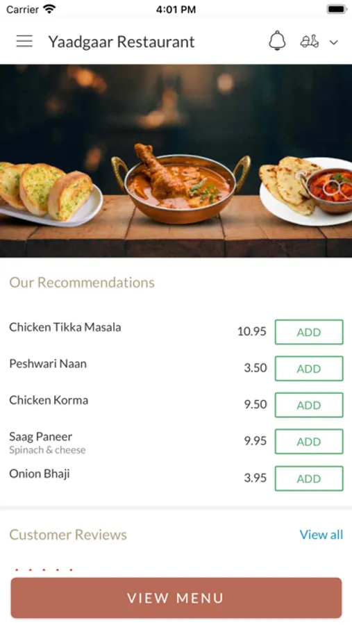 We offer a world of flavours and spices, which all comes together to create a dining experience that will transport you to another world. Our chef prepares all of our authentic dishes completely fresh, we also offer a wide range of authentic Indian cuisine to suit anyone's tastes. We have a new online ordering app which displays our entire menu - so please feel free to browse, find your favourite or try something new, and enjoy our restaurant quality meals in the comfort of your own home.