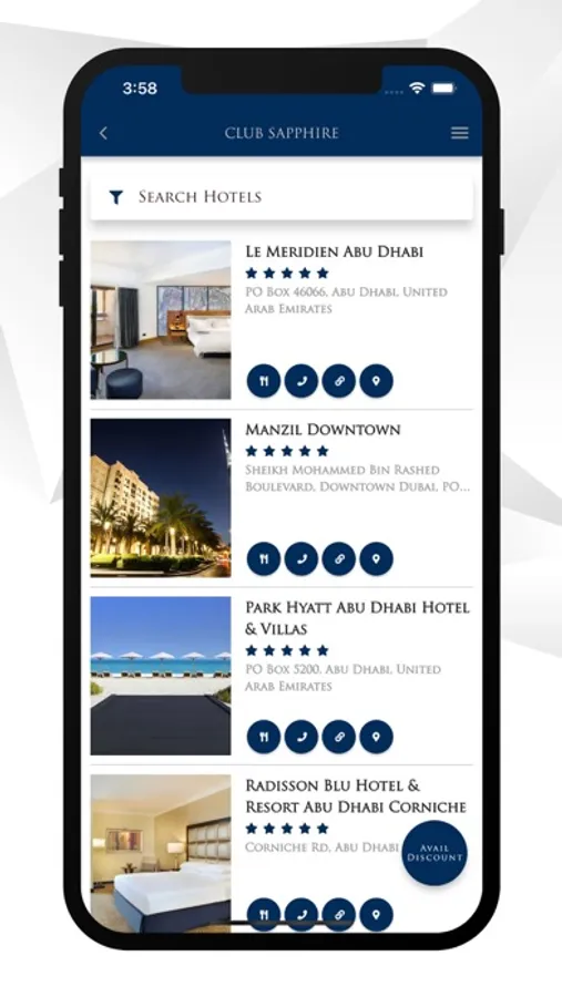 As a member of Club Sapphire, this application provides you detailed information about selected hotels in UAE, and the exclusive discounts and benefits you can enjoy during your visits at selected hotels.