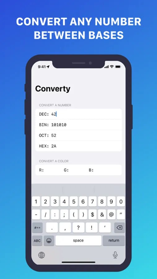 Converty: Base Converter, is the fast and easy way to convert numbers with tons of possibilities for free!