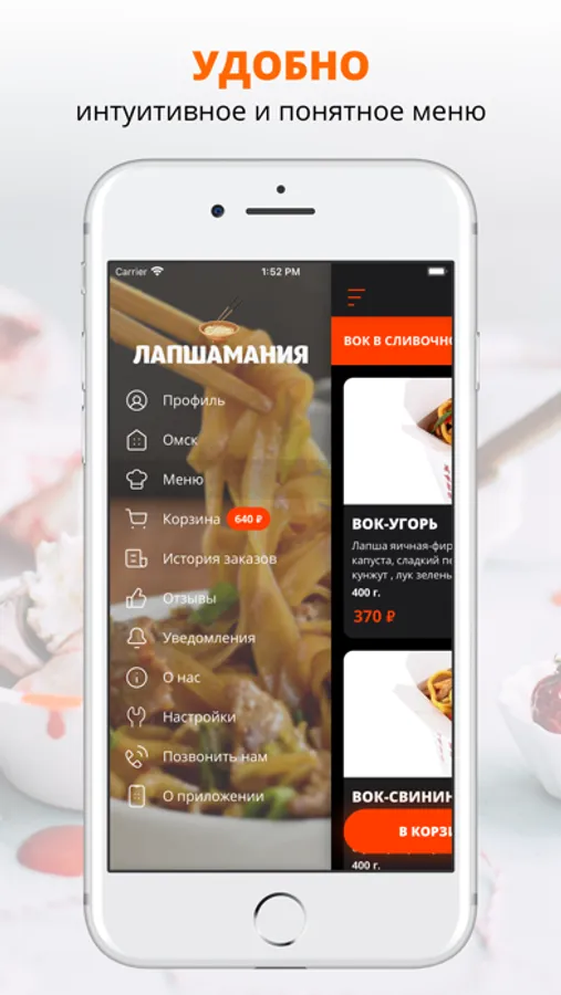 Воспользуйтесь удобным приложением для заказа еды «ЛАПШАМАНИЯ».