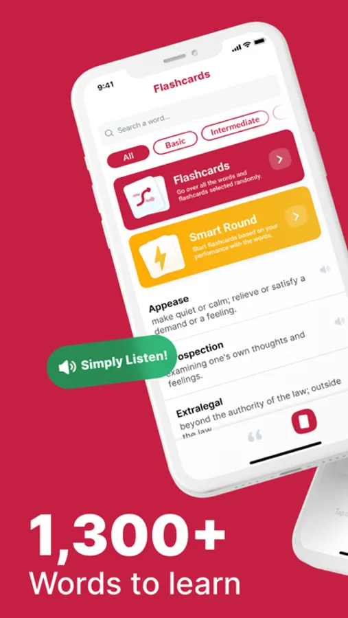 Study on the go! Use the app wherever you go without an internet connection, and still access all the lessons, flashcards and words.