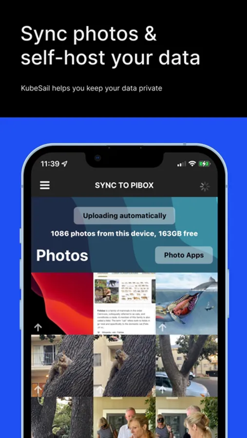 The KubeSail app allows you to manage your home servers, install software, and backup photos over your local network! Super fast and secure photo backups directly to your PiBox or other attached server.