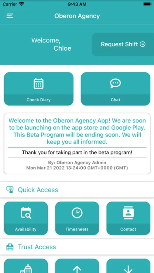 With our app you can upload your availability, find and request your preferred shifts, chat with our booking team, view your upcoming shifts, submit timesheets and stay up to date with Oberon Agency news and updates.