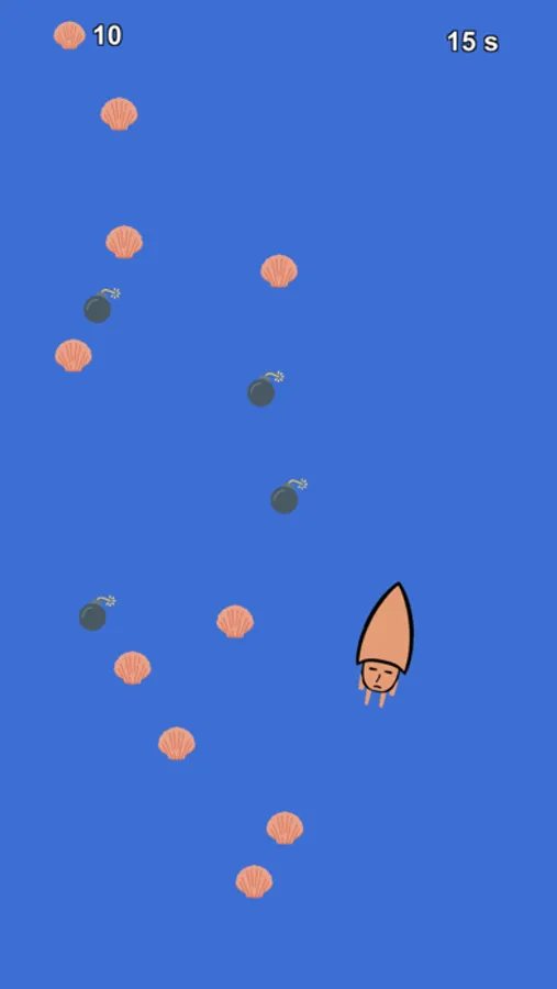 use 50 different squiddies to collect shells. but watch out for bombs!