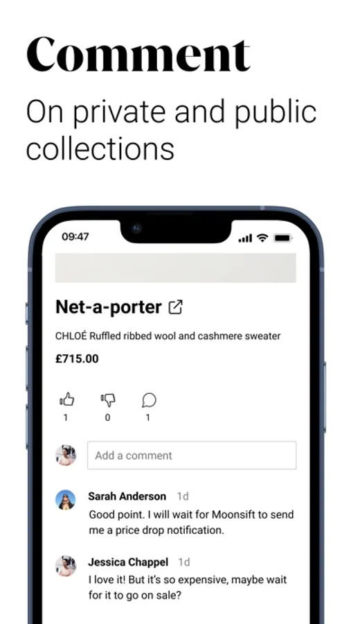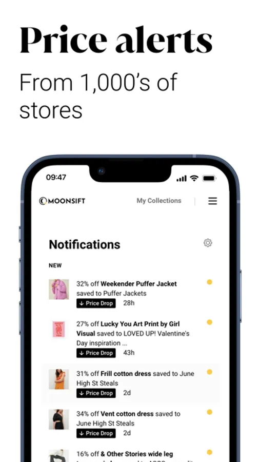 Stop clogging up your phone with 100’s of screenshots. Say goodbye to shopping with 100’s of tabs open or losing track of things in separate wish lists. If you see something you like, save it to Moonsift, then compare everything in one place and make better buying decisions.