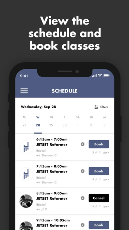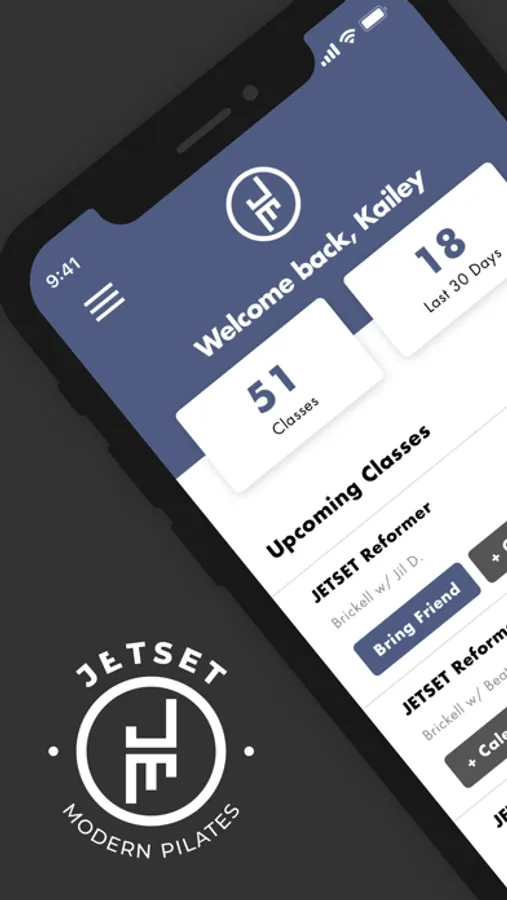 Download the JETSET Pilates app to maximize your experience. Find and book classes at your favorite studio, view class history, book-a-friend, and purchase packages or memberships.