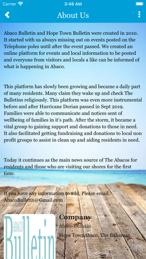 Information App for everything you need to travel to or while in The Abacos. Local relevant NEWS, EVENTS, Directory (and directions) Travel Protocols, Boating and Fishing Regulations, Real Estate, Employment, Buy Sell Trade & More! Your Go To Guide for The Abacos!