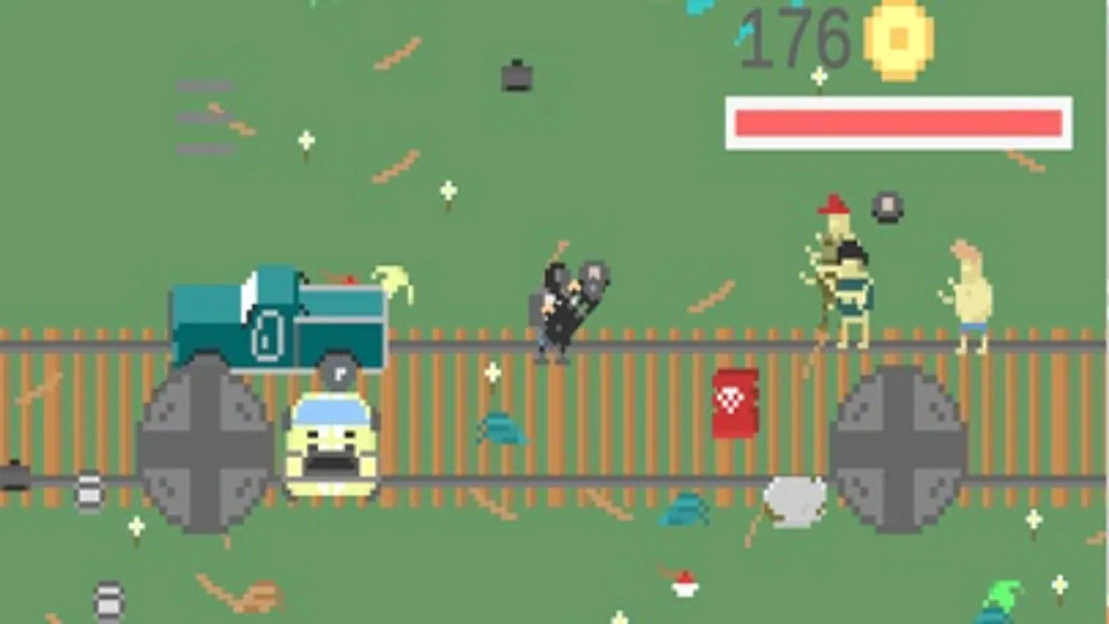 and blow up obstacles. you are able to select different characters