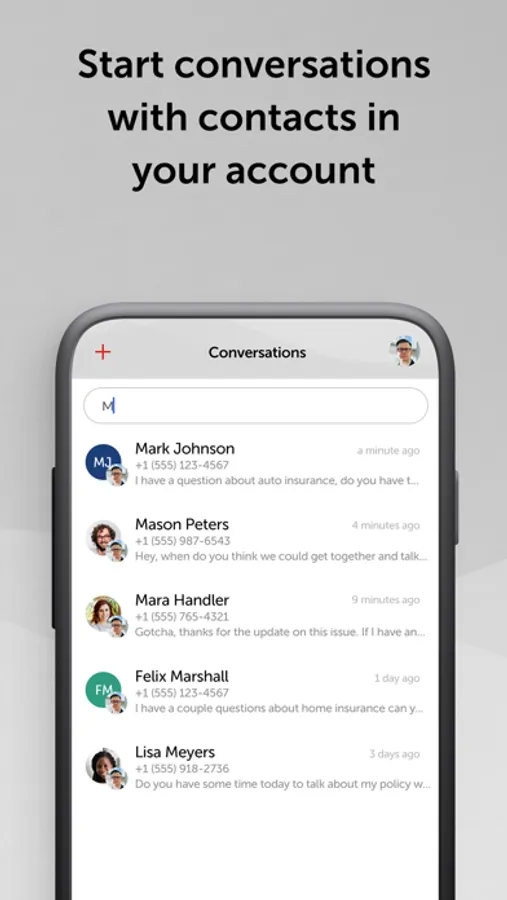 Start new conversations, continue existing ones and receive notifications when new messages arrive.