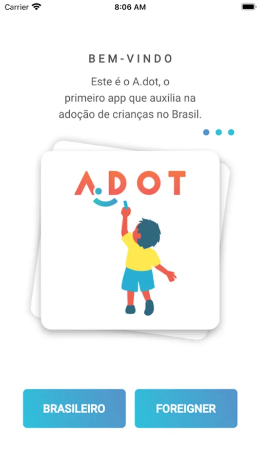 Adotar uma criança é o desejo de muitas famílias. Mas com o aplicativo A.dot muitas pessoas conseguirão realizar este sonho. Com ele a Adoção passa a ganhar visibilidade por meio de recursos tecnológicos, acessíveis a todo o Brasil. Adote essa ideia você também, baixe o app e conheça suas funcionalidades.