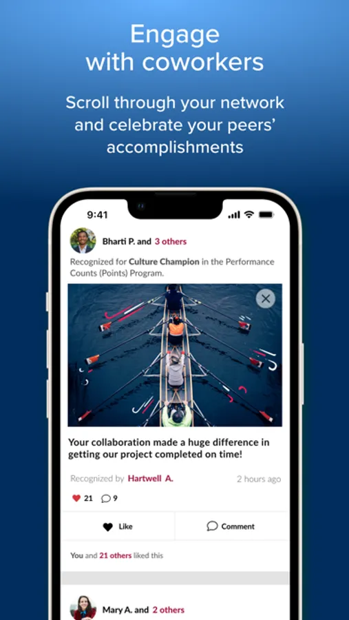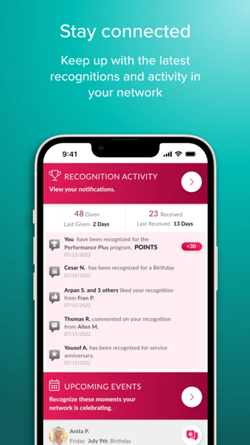 · Celebrate your peers’ accomplishments and give recognition on the go