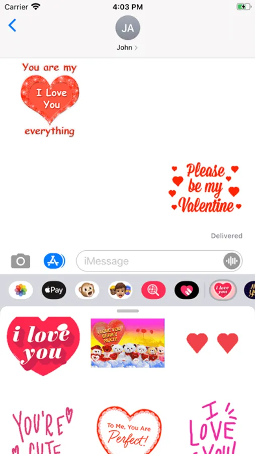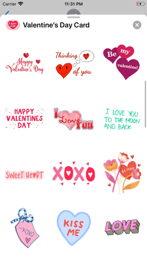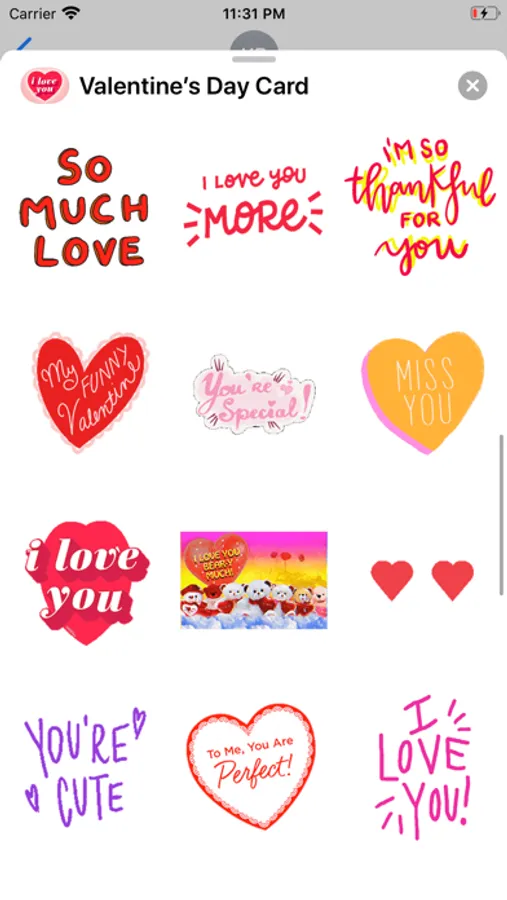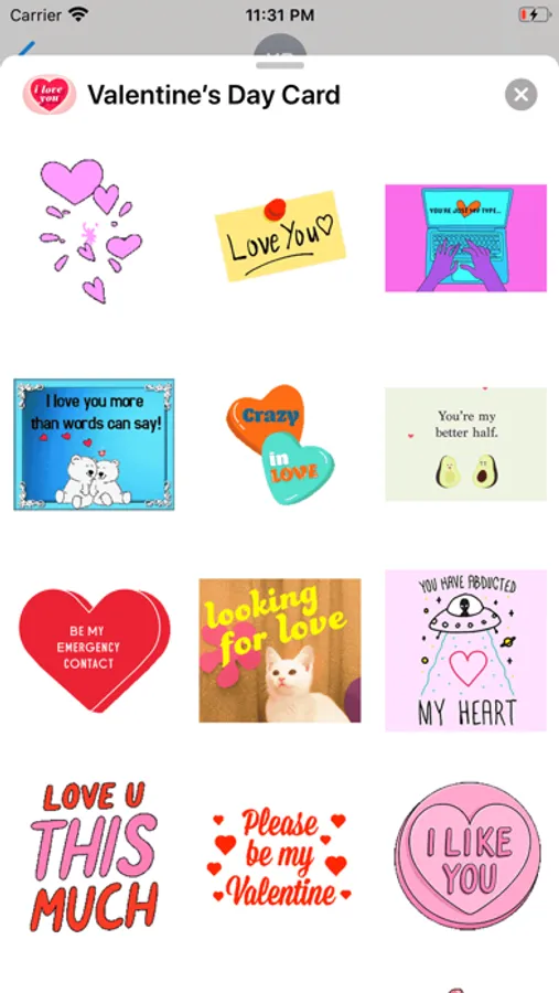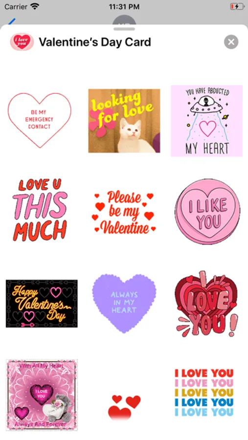 There is a wide variety of San Valentine’s Day Card you can choose from this app. Peel and stick them over other conversation bubbles, images, photos, even on other stickers.