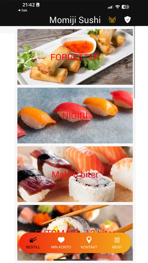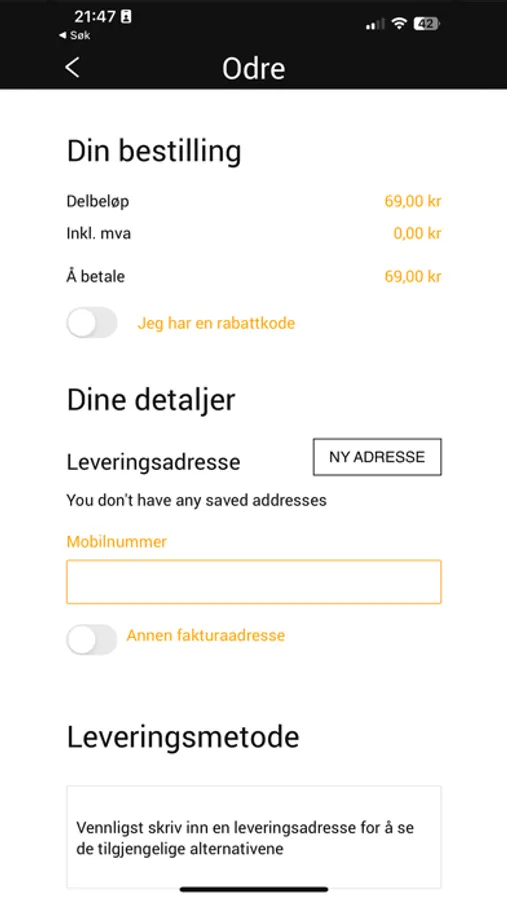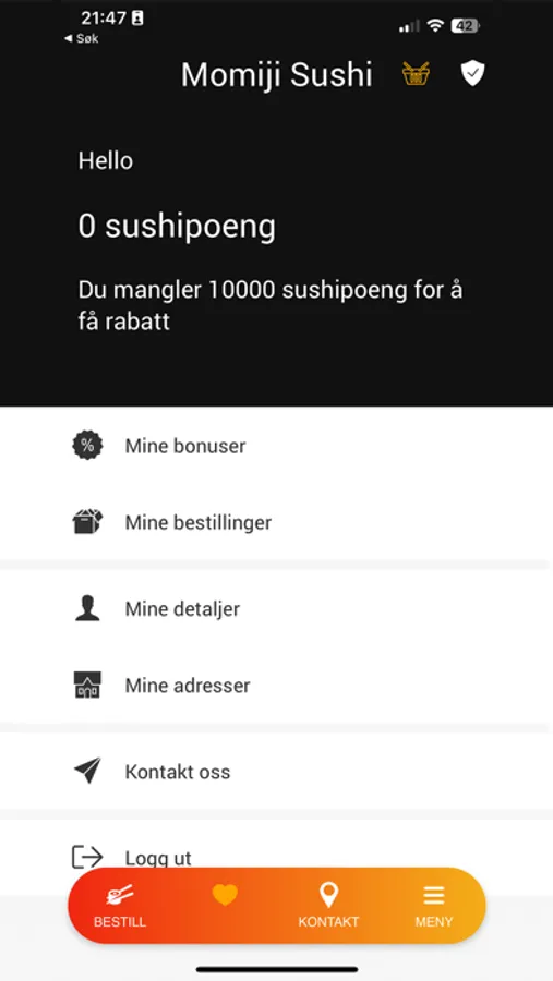 -bestille levering og take away samt full oversikt over dine bestillinger
