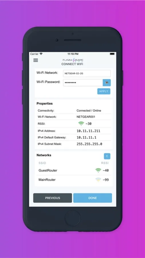 The PlasmaGuard Install app provides professional installers fast and efficient installation, configuration, and setup of PlasmaGuard air and surface purification systems.