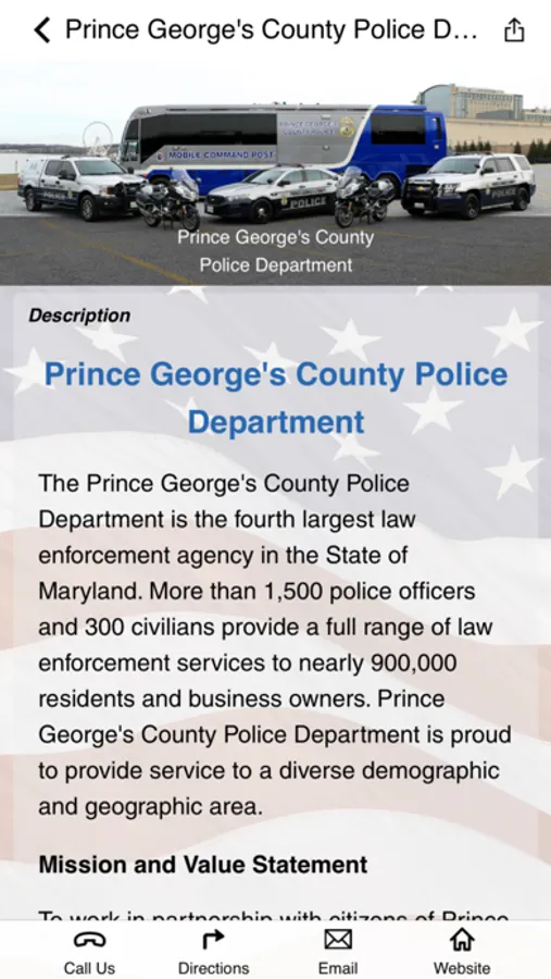 On behalf of the men and women of the Prince George's County Police Department, welcome to our app. This app is for the employees and family members of the Prince George's County Police Department as well as the community it serves. It contains information about our department as well as safety and crime prevention tips. Prince George's County Police Department employees will have access to a full range of wellness tools.