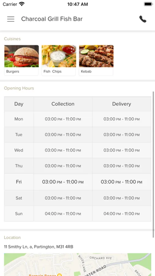 Charcoal Grill Fish Bar is located in Partington. Here at Charcoal Grill Fish Bar, we’re proud to offer some of the tastiest fish and chips in the UK - on our menu you can also find all your other chip shop favourites such as sausages, pies, and more! All our authentic food is freshly prepared with the finest ingredients, and cooked to perfection by our skilled chefs.