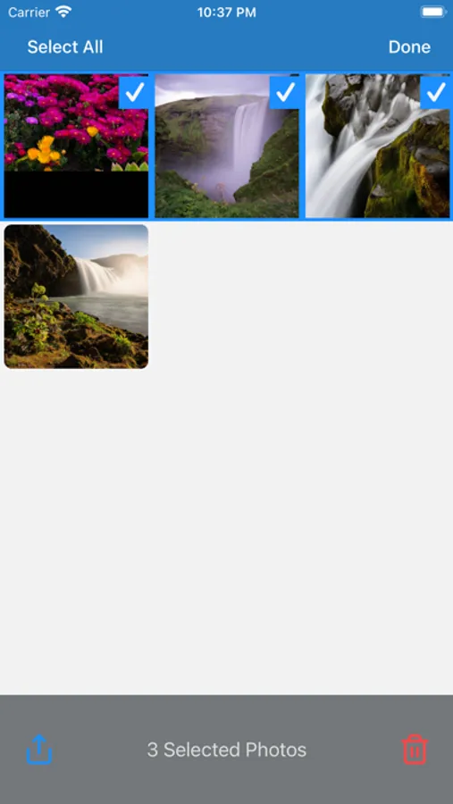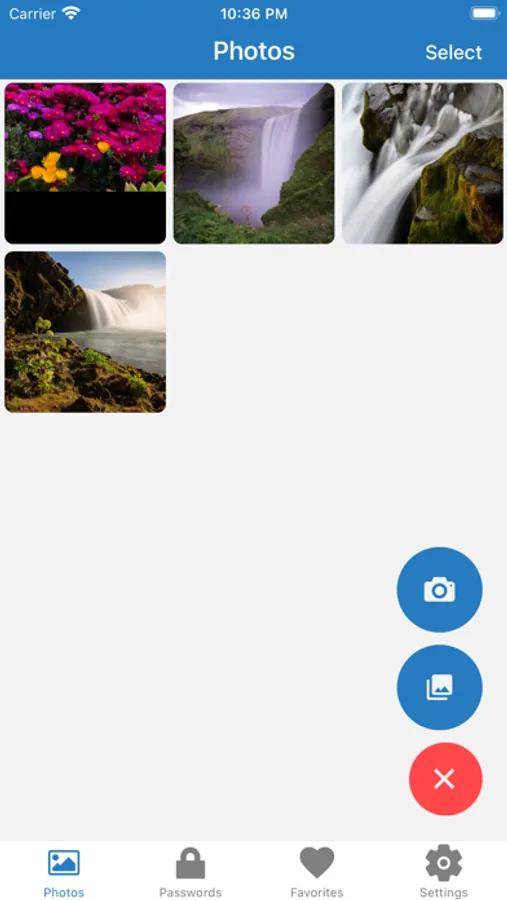 You can upload unlimited number of photos and files. Uploaded photos/files can be shared and deleted and mark as favorite. All photos marked as favorite will be displayed in the the 'Favorite' tab. Photos/files can be deleted individually or you can select multiple photos/files to delete by clicking the 'select' button at the top right.