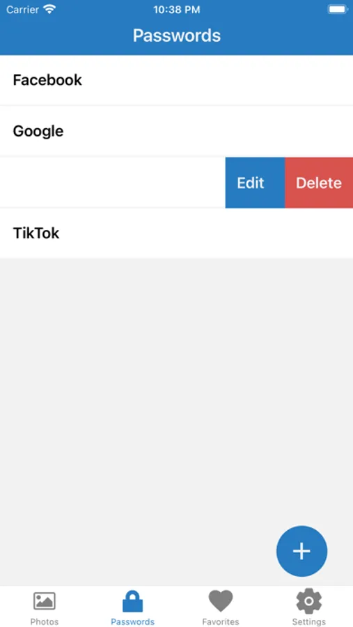 You can store unlimited number of passwords. Every stored password can be viewed, edited and deleted. Swipe left or click to view and swipe right to edit or delete.